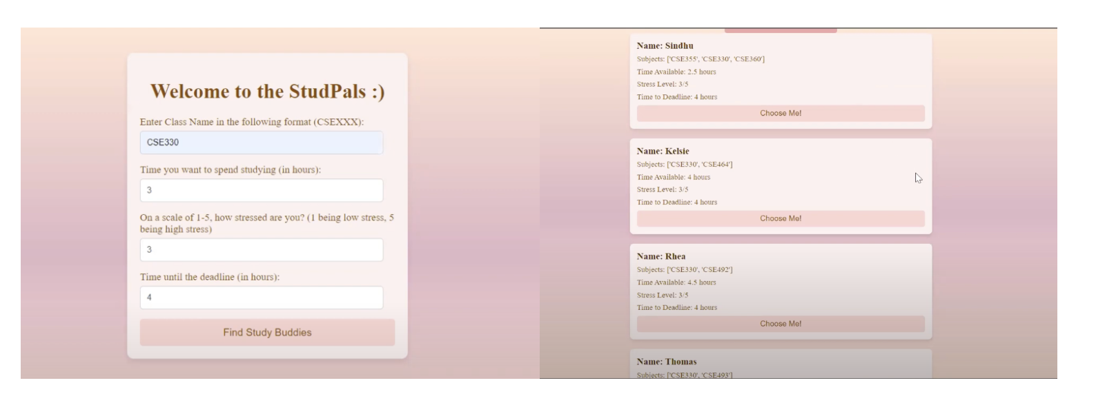 Web application that matches students for collaborative studying, with a Python and Flask-based matching algorithm. Built an interactive frontend with HTML, CSS, and Bootstrap.
